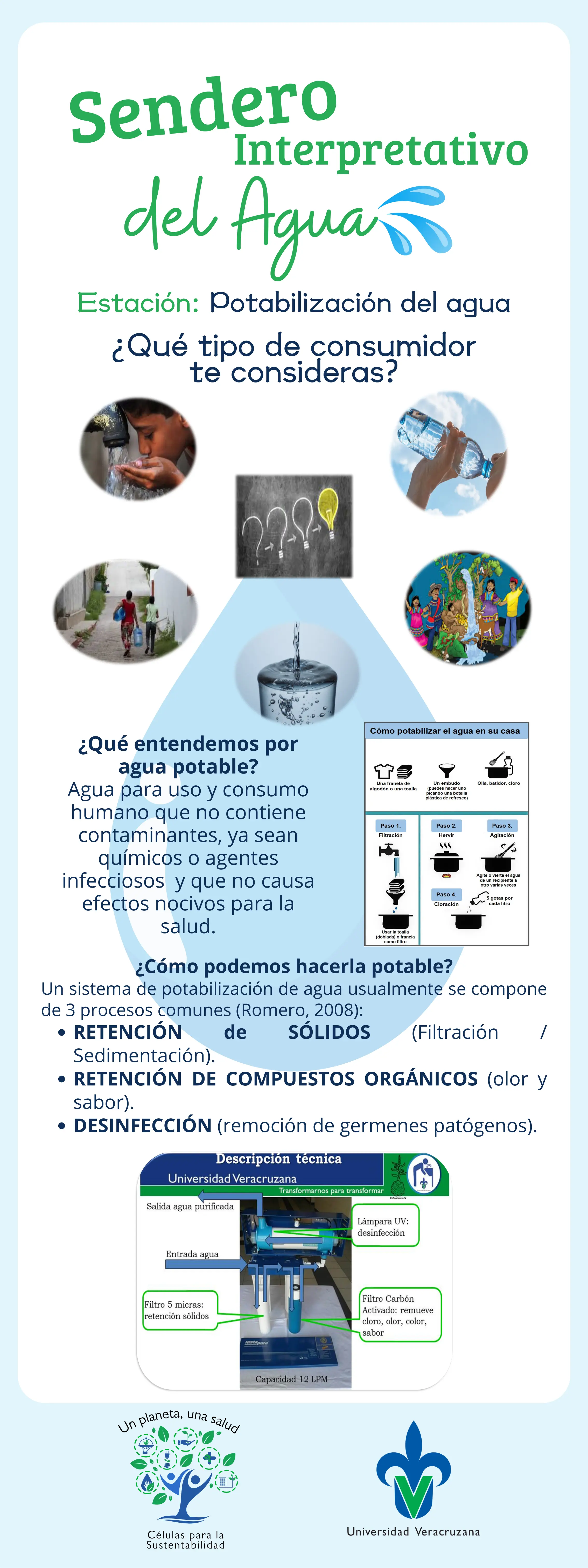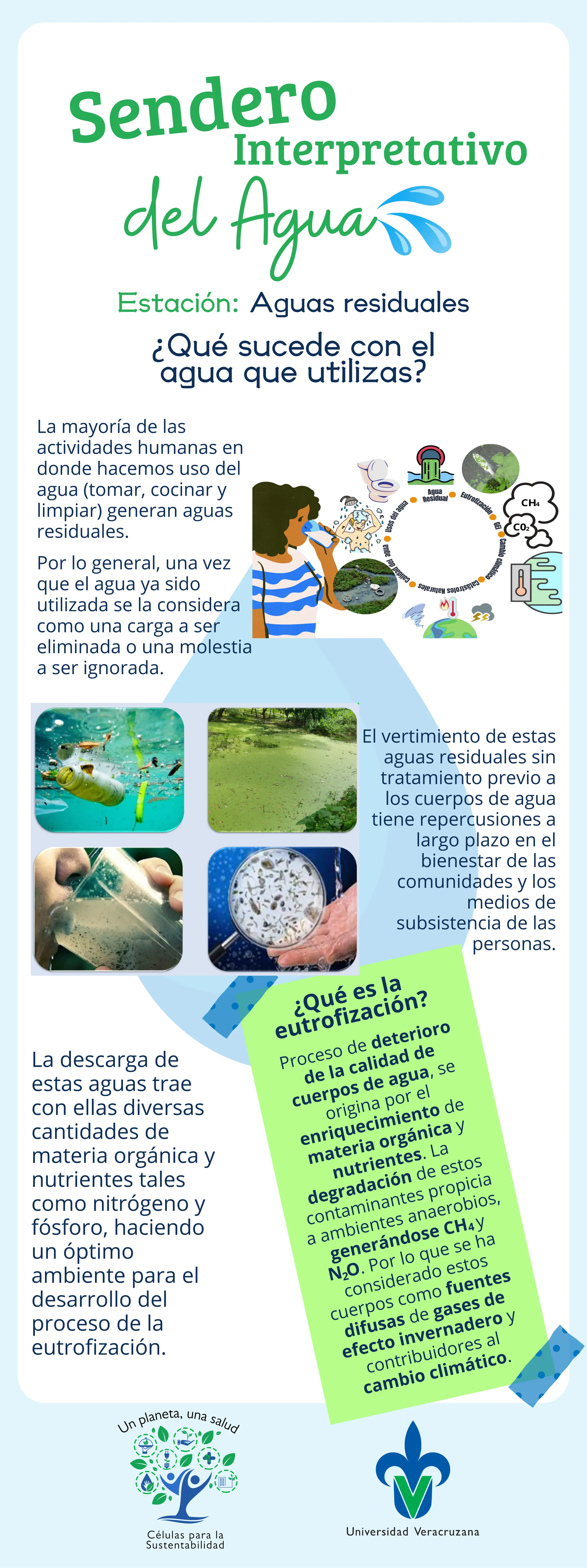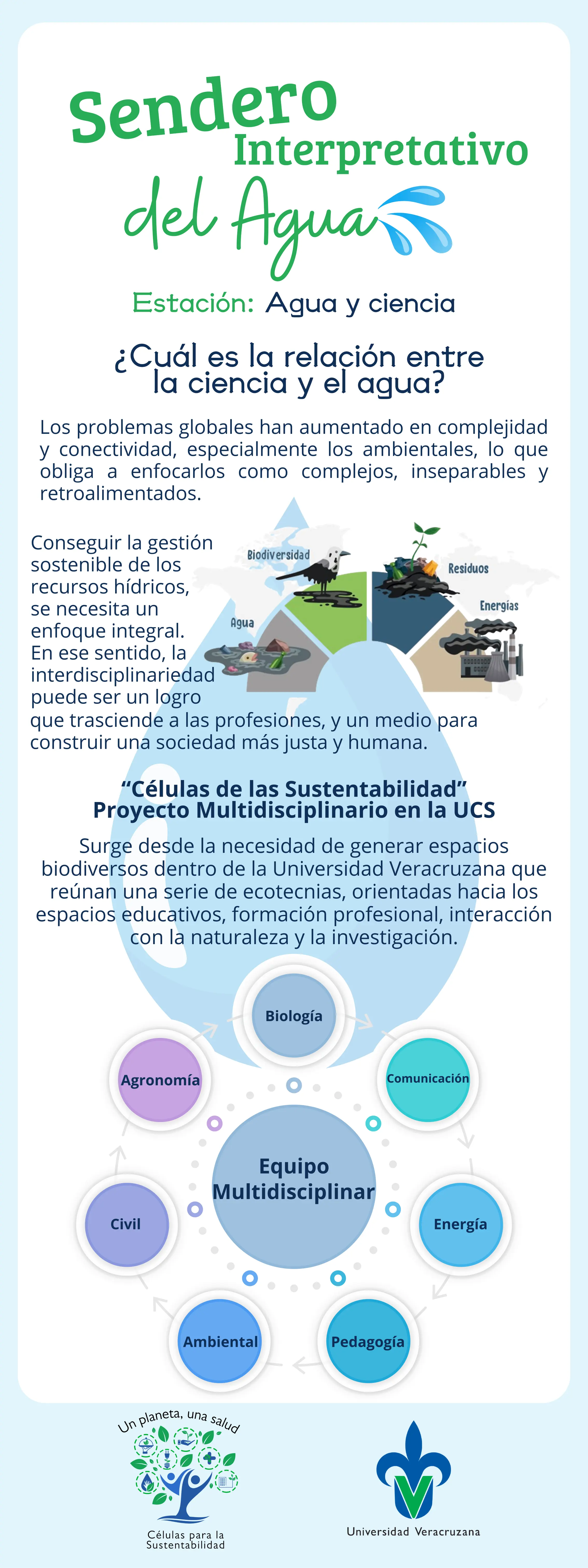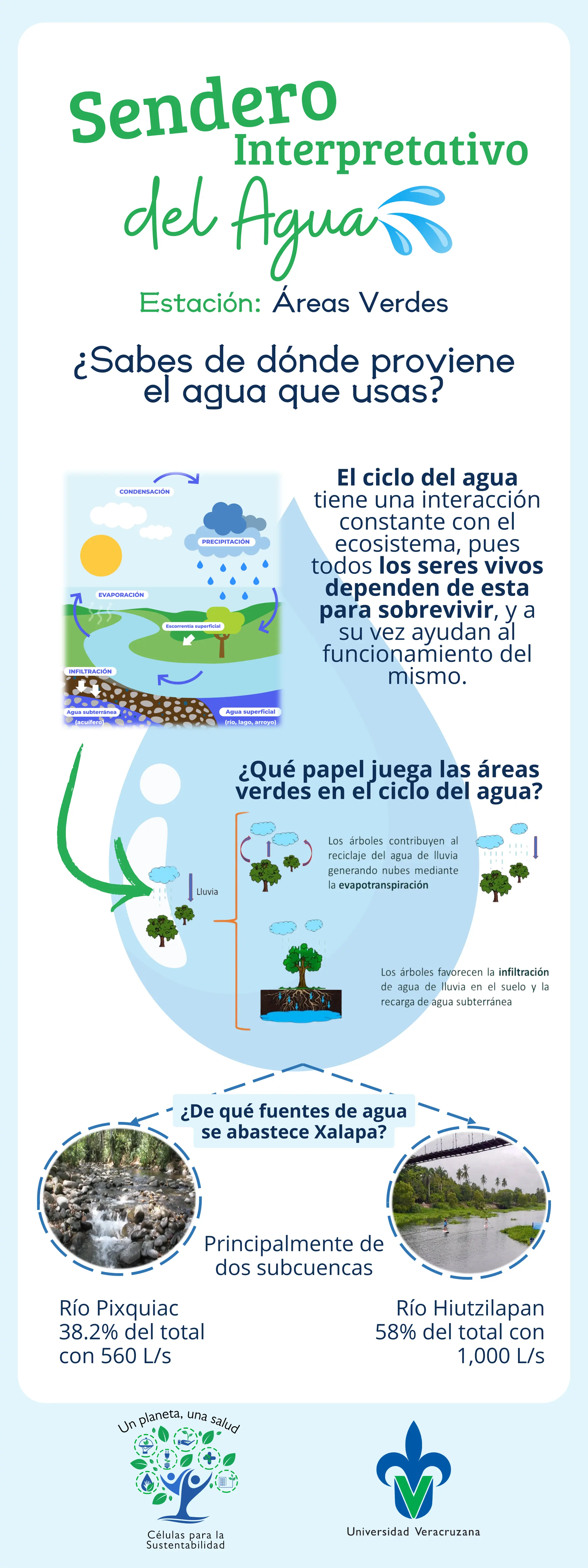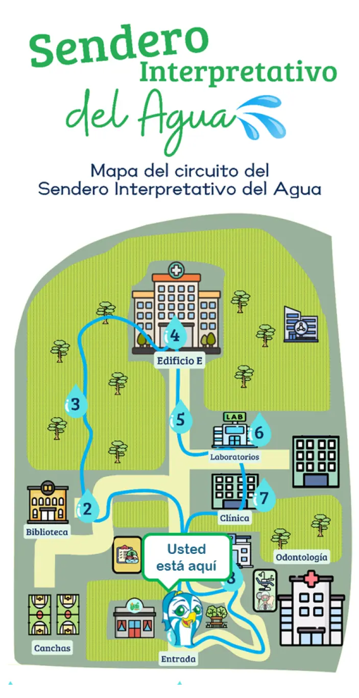 Este sendero está constituido por 8 estaciones, en donde te invitamos a reflexionar sobre diferentes tópicos enfocados en la gestión integral del recurso hídrico y su influencia en la salud: