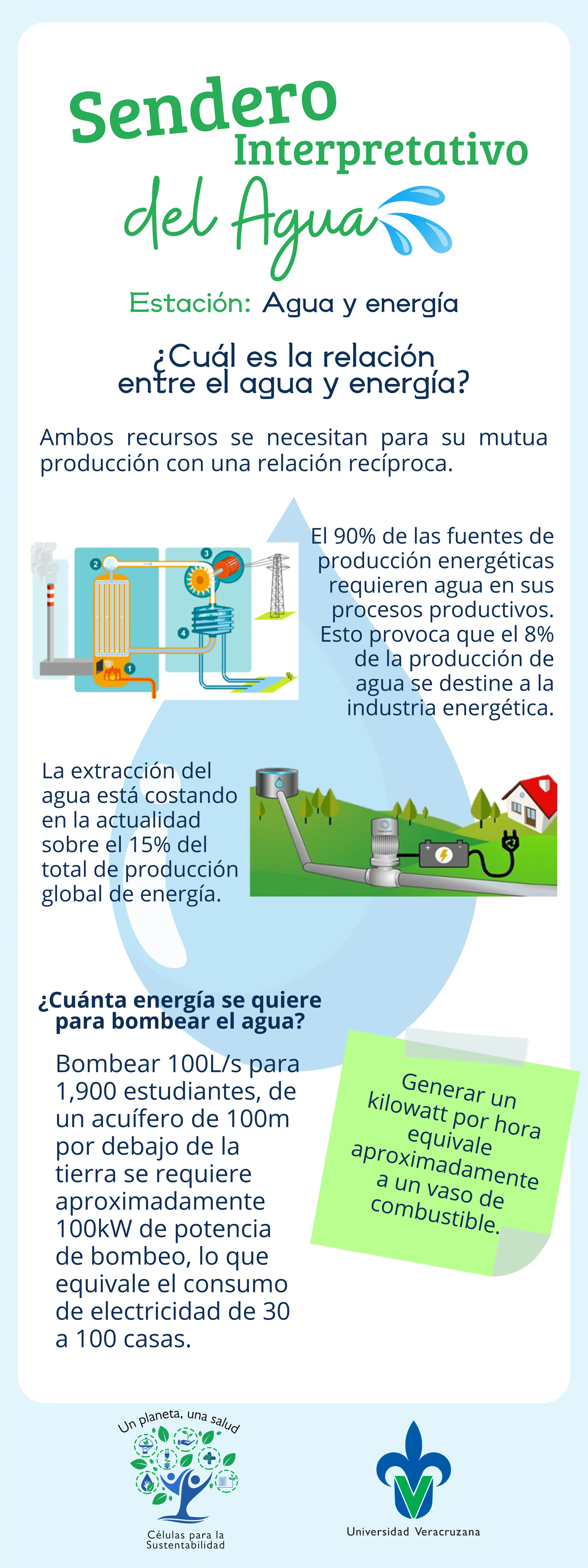 Mientras que se requiere de la energía para que se pueda disponer de agua para uso y consumo humano (incluyendo el riego) a través del bombeo, transporte, tratamiento y desalación.